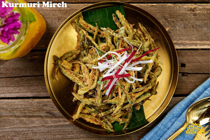 naan garnished with an assortment of chilies